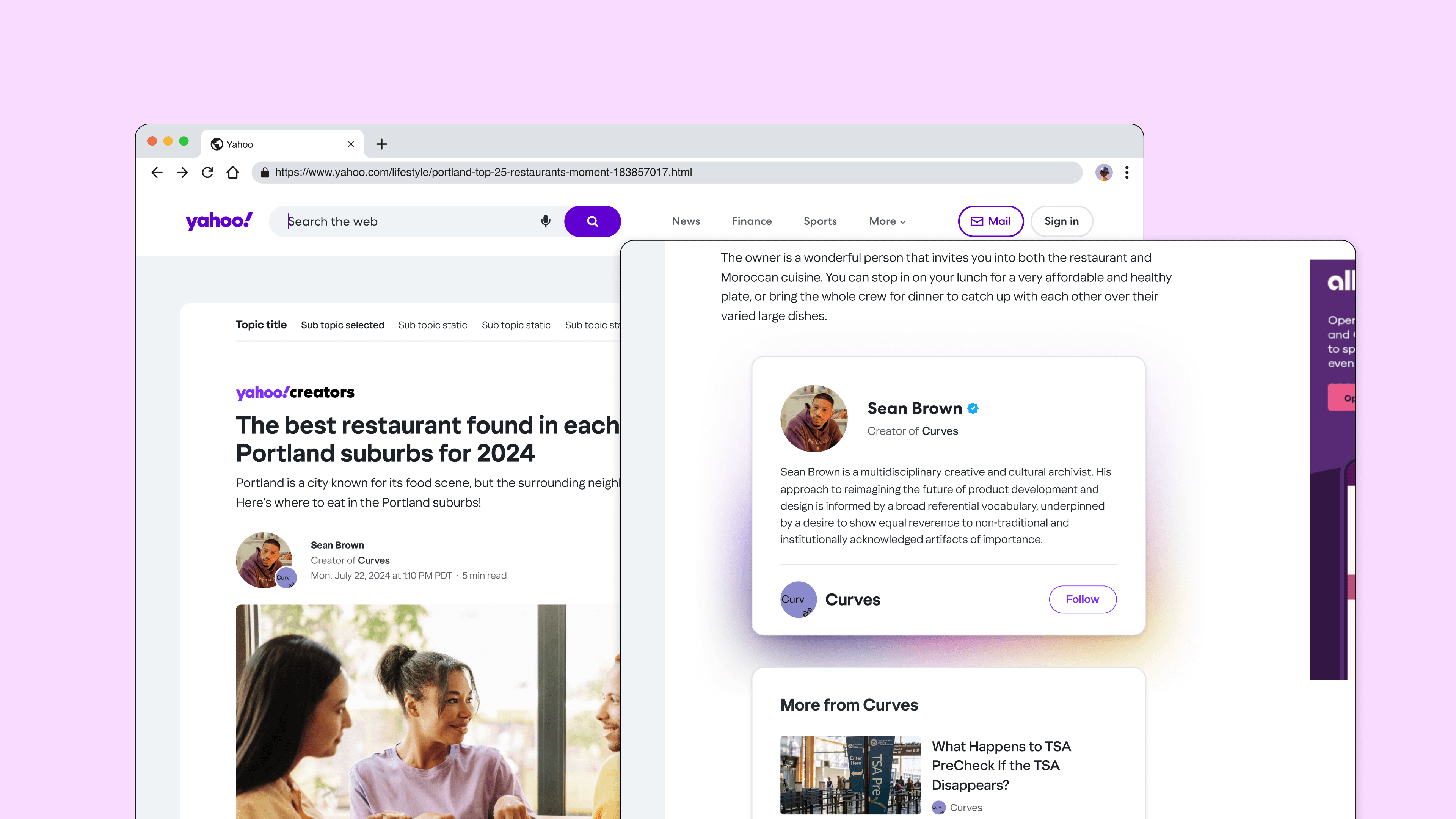 Leading design for Yahoo Creators, designing a platform from zero-to-one that empowers writers and content creators to publish and grow their audience on Yahoo.